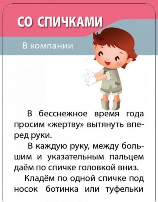 Шпаргалки для мамы "Детские розыгрыши"- набор красочных карточек, который подскажет, какую еще шутку можно устроить, когда собственные идеи закончатся. В комплекте 50 карточек, на которых найдете 80 остроумных розыгрышей для детей и взрослых, которые можно устраивать дома или в гостях! Уж поверьте, скучно не будет никому. Но самое главное, что и обидно - тоже. Дети будут счастливы от возможности подшутить над сверстниками или взрослыми, а вы будете уверены в безопасности их затей. Набор карточек сделает любую детскую вечеринку с участием вашего массовика затейника по-настоящему искрометной