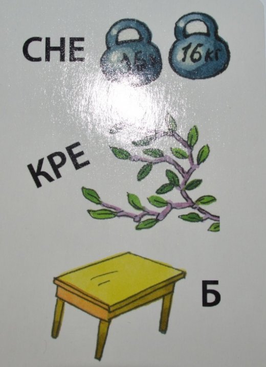 Задания расположены на 50 двусторонних карточках и бывают двух видов:· Ребусы с рисунками. Это классические головоломки, к которым все мы привыкли с детства. Как превратить репу в черепаху, а пень в ступеньку? Правильно соединяя части слов и запоминая названия предметов. Ребенок в восторге от языковых фокусов и при этом обогащает свою речь новыми словами.