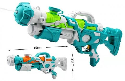 Купить Бластер водный бело-бирюзовый с ручкой 59 см в Новосибирске Вы можете в магазине настольных и развивающих игр "Игры Почемучек"
