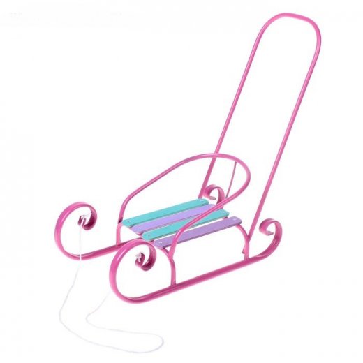 Санки для кукол представляют собой незаменимый и очень оригинальный атрибут для увлекательной игры девочек с любимыми куколками на улице в зимнюю пору или же дома на фоне воображаемых зимних пейзажей! Санки для кукол почти ничем, за исключением размера, не отличаются от настоящих. Они полностью изготовлены из металла и окрашены в насыщенный приятный цвет. Санки снабжены полукруглой спинкой, предохраняющей любимую куклу от падения и утери.
