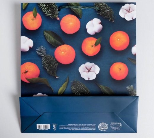 Купить Пакет подарочный новгодний Мандаринки 23 x 27 × 8 см в Новосибирске Вы можете в магазине развивающих и настольных игр "Игры Почемучек".