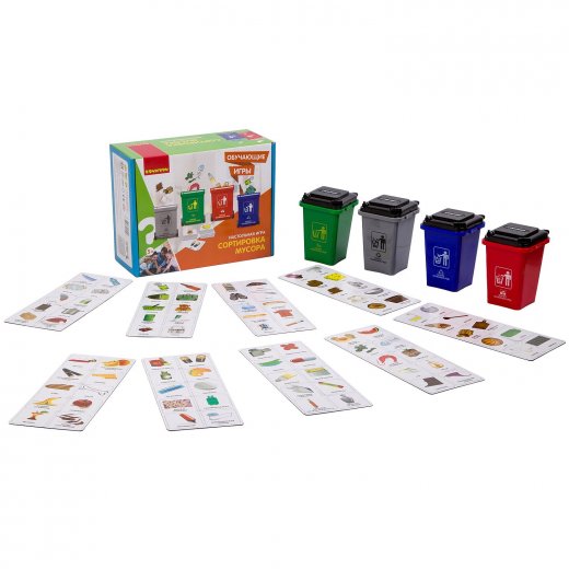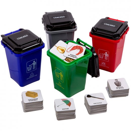 Настольная игра "Сортировка мусора" тренирует логическое мышление и способность думать. Развивает познавательные способности и концентрацию внимания.