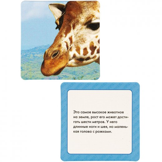 На обороте каждой карточки прописаны интересные факты из жизни этого животного. В игровой форме Ваш ребёнок узнает много интересного про каждое из них.