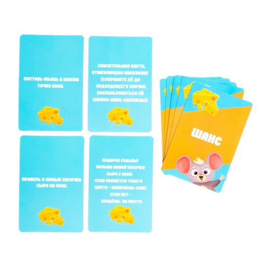 - Если выпало 6: вытяните карточку «Шанс». Эти карточки могут помочь или помешать вам в поисках кусочка сыра.