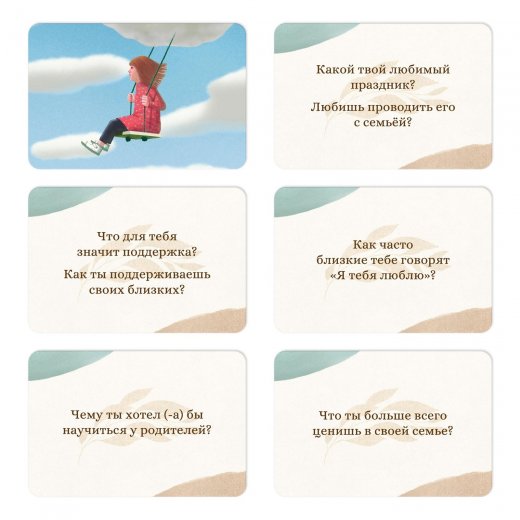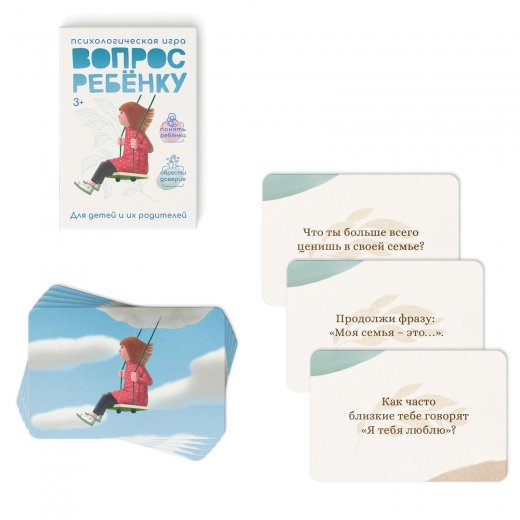 С психологической игрой «Вопрос ребёнку» вы и ваш ребенок научитесь свободно выражать свои мысли, слушать друг друга и делиться личными взглядами на жизнь. Вас ждут 50 вопросов, ответив на которые, вы построите доверительные отношения и лучше узнаете ребенка.
