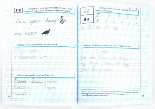 В основе обучения дошкольника письму по авторской методике Н.С. Жуковой лежит слоговой принцип русской графики. Слог выступает в качестве единицы письма, в которой написание (и чтение!) гласной и согласной букв взаимообусловлено и представляет собой цельный графический элемент.