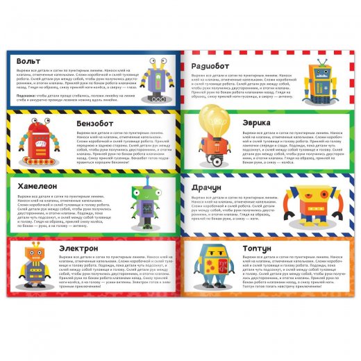 В этой книге тебя ждут целых 8 фигурок различных роботов. Просто вырежи и склей, и твой собственный робопарк готов!
