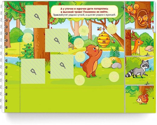 Тренажер напечатан на специально подобранной бумаге, с которой удобно работать. Переплет на пружине, с одной стороны, не мешает выполнять задания, а с другой, позволяет аккуратно отделить от тетради нужные страницы. Для выполнения заданий в тренажере есть наклейки, которые так нравятся малышам.