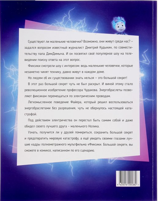 Комиксы Фиксики Большой секрет – это замечательный детский комикс по телевизионному мультсериалу "Фиксики" создан специально для маленьких фанатов крохотных человечков. Существуют ли маленькие человечки? Возможно, они живут среди нас? - задался вопросом известный журналист Дмитрий Кудыкин, по совместительству папа Дим Димыча. И он посвятил своё популярное шоу на телевидении поиску ответа на этот вопрос. Фиксики смотрели шоу с интересом: ведь маленькие человечки, которые незаметно чинят технику, давно живут в каждом доме. Но людям об их существовании знать нельзя - это большой секрет!