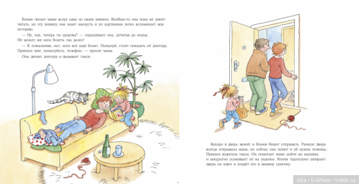 Книга "Конни помогает маме" научит действовать самостоятельно и проявлять заботу о близких. Когда мама Конни потянула ногу, у девочки появился шанс доказать, что она уже большая и самостоятельная! Здесь Конни первый раз отправляется одна в детский сад, сама готовит обед и убирает в доме. Совсем как взрослая.