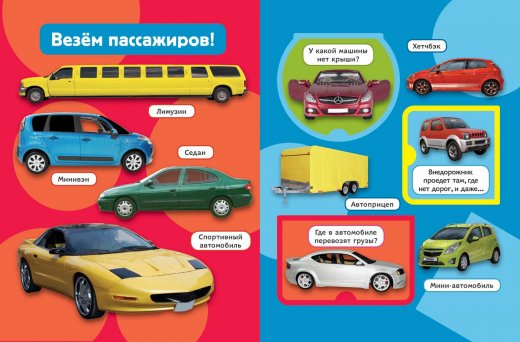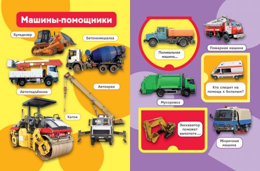 Юные коллекционеры различных моделей автомобилей и прочего транспорта будут в восторге от этой красочной книги. Изучая еще неизвестные для себя виды специальной техники и другого транспорта, ребенок также будет иметь возможность потренировать свои умственные способности и логическое мышление, отвечая на предложенные вопросы.