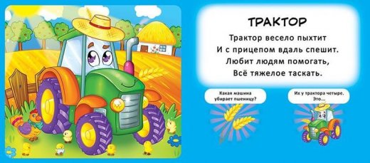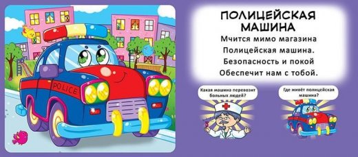 На каждом книжном развороте внимание Вашего малыша привлекут напечатанные на качественной бумаге забавные изображения транспортных средств.