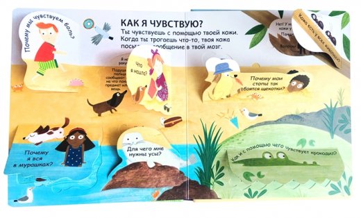 Как мы чувствуем, осязаем, слышим? На эти и другие вопросы "почемучек" вы найдете в этой интересной книге с окошками!