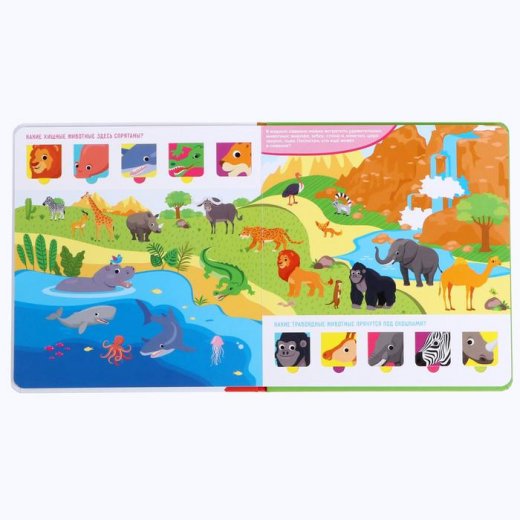Купить книга картонная в твердом переплете 100 окошек "Такие разные животные" в Новосибирске Вы можете в магазине развивающих и настольных игр "Игры Почемучек".