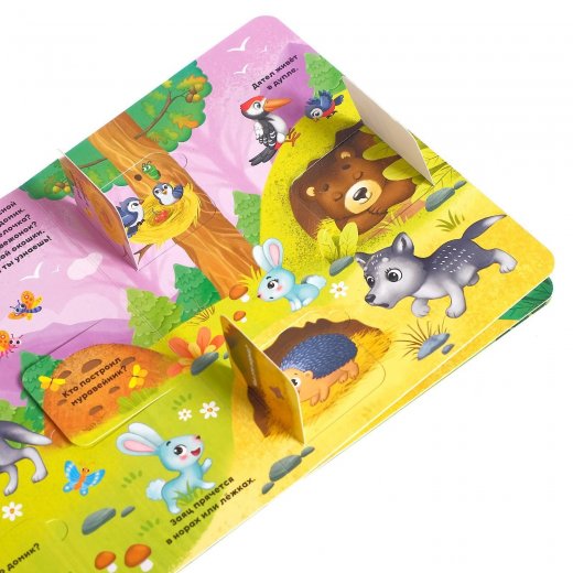 Купить книга картонная с окошками "На лесной опушке" в Новосибирске Вы можете в магазине развивающих и настольных игр "Игры Почемучек".