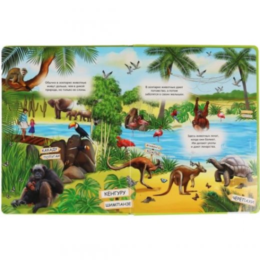 Эта занимательная книга в увлекательной форме познакомит малыша с обитателями зоопарка и интересными фактами о них. Яркие картинки и 100 секретных окошек превратят обучение в увлекательную игру.
