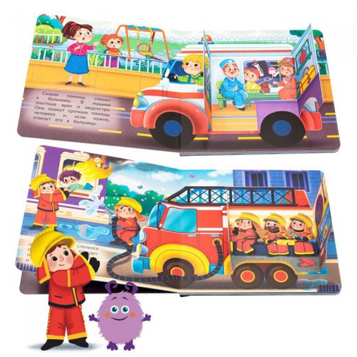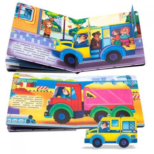 По улицам города спешат умные и полезные машины: скорая помощь, грузовик, эвакуатор, мусоровоз, пожарная и полицейская машины. Куда они едут? Что везут? Кто сидит внутри? Какие инструменты и механизмы прячутся в кузове и кабине? На каждом развороте окошко с двойными створками, секретами и заданиями для малышей. Окошки раскрываются в полноценную картинку и содержат множество полезной и интересной информации о машинах для маленьких почемучек.