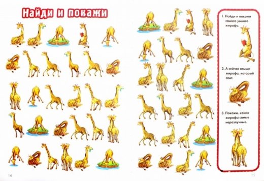 Играя, ребенок с легкостью запомнит всех животных, назовет действия, которые они свершают, научится рассуждать и отвечать на вопросы. А если ему пока трудно найти что-то на странице — мама всегда поможет. Подарите своему малышу веселые минуты увлекательной игры!