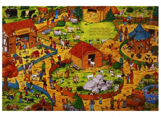 Виммельбух рассказывает о жизни самых разнообразных обитателей нашей планеты. Львы и олени, орлы и киты, жизнь животных в дикой природе и в зоопарке. Маленькие читатели будут много раз возвращаться к этой книге. Следя за приключениями ее героев, они выучат названия животных и узнают многое об их жизни.