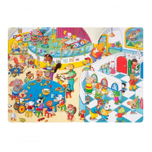 В книге представлены красочные картинки, переносящие детей в детский сад, которые посещают различные детеныши животных.
