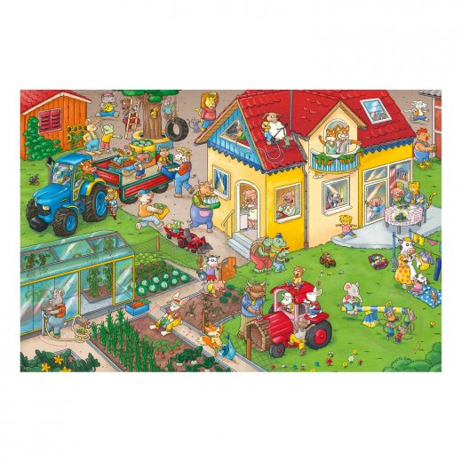 Замечательная книга с открывающимися окошками, за которыми прячется много интересного. Здесь столько интересных занятий! Посмотри: можно косить сено, собирать в саду свежие фрукты, запускать воздушного змея и даже починить трактор!