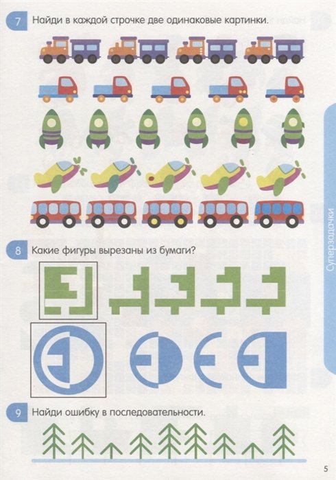 На каждой странице представлены яркие красочные картинки с разнообразными заданиями. Если использовать простой карандаш, одно и то же задание можно выполнять несколько раз, улучшая свой результат.