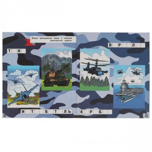 Маленький любознайка с удовольствием будет заниматься с этой красочной книгой-активити, оформленной в военной тематике. Увлекательные игры помогут ему весело и с пользой провести досуг или скоротать время в дороге.