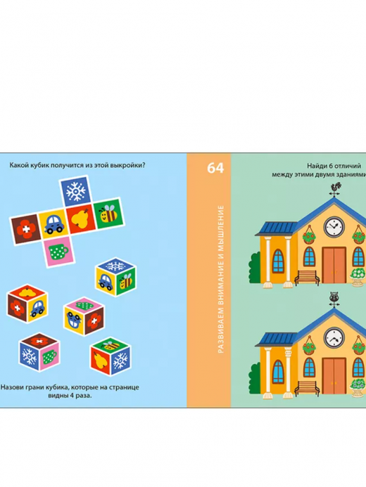Занимаясь с альбомом, ваш ребёнок будет: - решать логические, графические и творческие задачки; - считать; - дорисовывать по образцу и рисовать самостоятельно; - искать сходства и различия, закономерности, ошибки художника и спрятанные объекты на картинках; - проходить лабиринты разной группы сложности; - решать головоломки; - синхронизировать работу левого и правого полушарий мозга и многое другое.