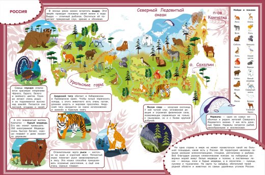 Атлас можно использовать в качестве оригинального учебного пособия для детей младшего школьного возраста, которое в игровой и занимательной форме даст представление Вашему ребёнку о том, какие животные живут на материках нашей планете и как они называются.