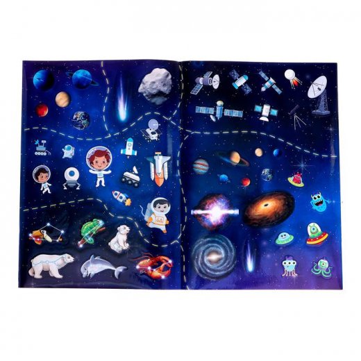 Купить атлас с наклейками "Космический" в Новосибирске Вы можете в магазине развивающих и настольных игр "Игры Почемучек".