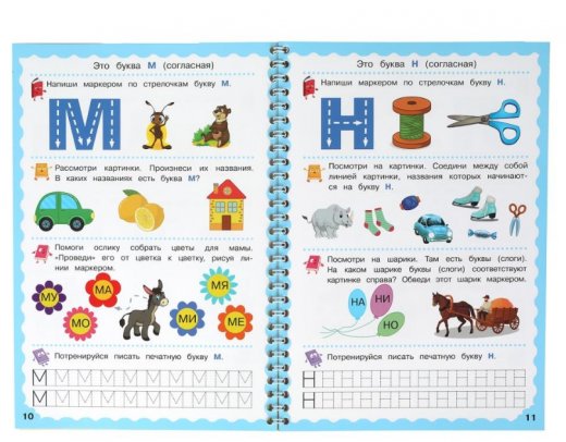 Прописи на спирали с маркером «Буквы, для детей 5-6 лет» из серии «Пиши-стирай» ТМ «УМка» - отличный тренажёр для развития графомоторных навыков: - занимательные задания - ламинированные страницы - возможность неоднократного использования - удобный формат - стираемый маркер в комплекте Серия прописей предполагает многоразовое использование. Все задания составлены с учётом рекомендаций психологов и представлены в игровой форме, что позволяет сформировать интерес к занятиям. Для большего удобства в комплекте уже предусмотрен маркер, на колпачке которого находится специальная губка для стирания написанного.