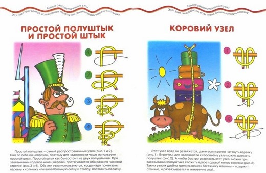 Металл и синтетика могут обеспечить нам самые разнообразные и надежные крепления. Но оказывается, узлы не так-то просто удалить из нашей жизни за ненадобностью. Практически каждый день мы зашнуровываем кроссовки, изредка шьем иголкой, завязывая на конце нитки узел, мужчине, хотя бы иногда, приходится привязывать к багажнику машины груз, к леске - крючок, ставить палатку... Иначе говоря, научиться завязывать узлы ребенку будет полезно. Кроме того, манипуляции с веревкой способствуют развитию ловкости пальчиков. В нашей книжке вы найдете самые простые узлы, которые нетрудно научиться завязывать, и ваши сын или дочь будут горды приобретенными навыками.