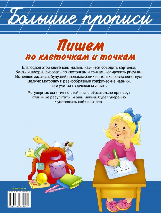 Благодаря этой книге ваш малыш научится обводить картинки, буквы и цифры, рисовать по клеточкам и точкам, копировать рисунки. Задания разнообразные, уровень сложности на разный возраст. Есть обводки, штриховки, рисунки по точкам, задания, где надо скопировать рисунок или дорисовать половинку или часть рисунка, математические диктанты и даже графические задачки на логику.