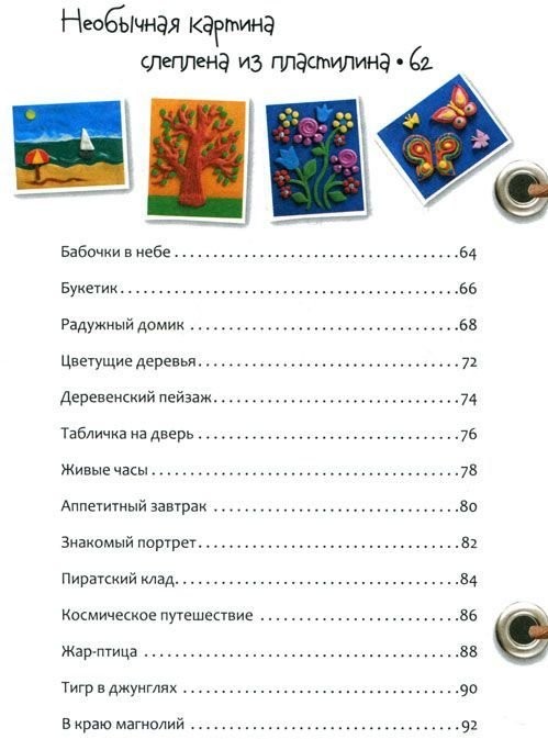 По книге можно заниматься с самыми маленькими детьми. Для части поделок нужно только одно умение: скатывать пластилиновый шарик. И вот уже появился веселый снеговичок или забавная гусеница. Другие модели требуют больших навыков, но тоже достаточно просты в изготовлении. Это фигурки различных животных, машины, букеты цветов, пластилиновые картины, поделки с использованием дополнительных материалов: камешков, ракушек, пузырьков, спичек. Автор подробно рассказывает о различных приемах работы с пластилином: как лепить кубик и колбаску, как сделать мраморный пластилин и получить нежные оттенки цветов, как правильно хранить поделки. Адресовано детям 7-9 лет, их родителям, руководителям художественных кружков.