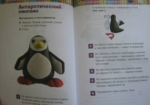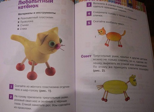 Автор подробно рассказывает о различных приемах работы с пластилином: как