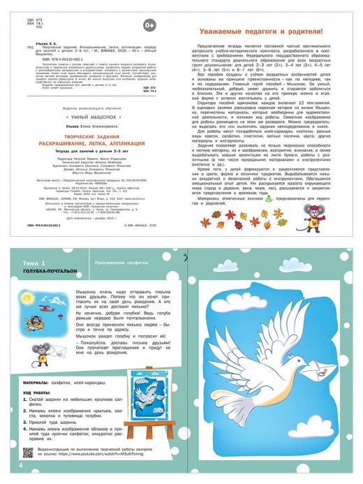 Купить Ттворческие задания "Раскрашивание лепка аппликация 2-3 лет" в Новосибирске Вы можете в магазине развивающих и настольных игр "Игры Почемучек".
