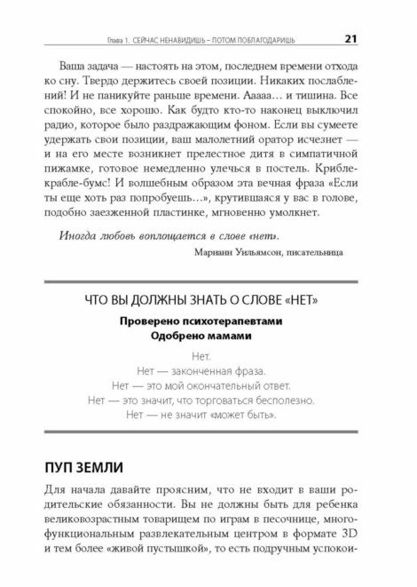 Робин Берман, дипломированный психотерапевт и мать троих детей, предлагает взять лучшее от прежней системы воспитания (когда потребности детей никого не интересовали) и от современной. В своей книге она постаралась объяснить взрослым, как надо проявлять родительскую любовь и заботиться о своих детях, чтобы они выросли уверенными в себе, самостоятельными, счастливыми людьми, умеющими любить и делать счастливыми других.