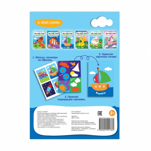 Купить "Книжка аппликация наклейками. Для мальчиков" в Новосибирске Вы можете в магазине развивающих и настольных игр "Игры Почемучек".