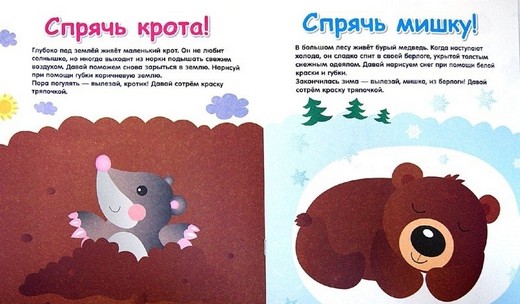 Эта книга поможет приобщить малыша к интересному и полезному занятию - рисованию. Крохе понравится обмакивать влажную губку в краску и проводить ею по картинке, "пряча" изображение под слоем краски. А потом снова "находить" его, стирая краску влажной тряпочкой. В книге вы найдете сюжеты, которые понравятся малышу, а специальное покрытие страничек позволяет повторять задания, делая книжку многоразовой.