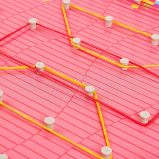 Попросите маленького ученика закрепить резинку между штырьков, дайте ему понять, что ее можно растягивать не только по прямой линии, но и по ломаной. Подскажите маленькому изобретателю, как с помощью нескольких пружинящих нитей смастерить фигуры, пусть он попробует сделать это самостоятельно.