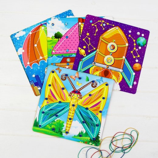 Комплектация: геоборд, 4 накладные тематические изображения, резиночки.