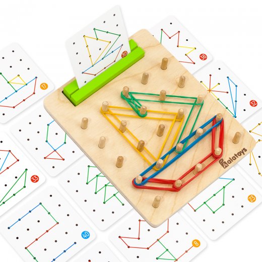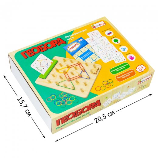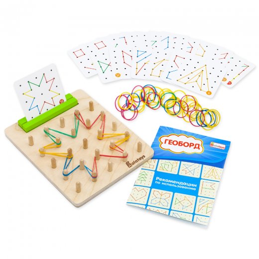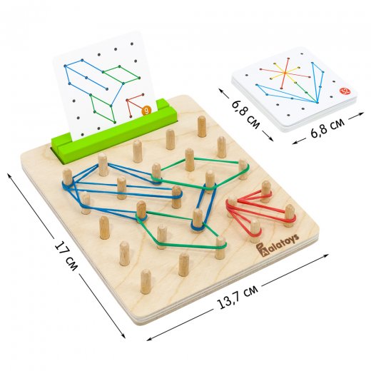 Геоборд с резинками – развивающая деревянная игрушка, представляет собой доску со штырьками для натягивания резинок между ними. теперь с подставкой для карточек с заданиями и в яркой полноцветной коробке.