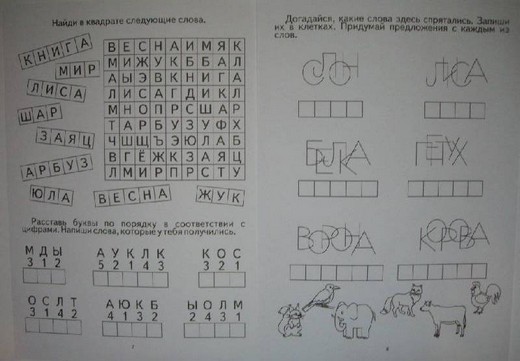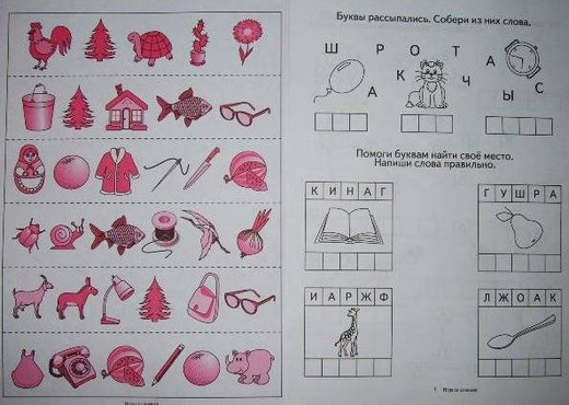 Цветной вкладыш необходимо разрезать по пунктирным линиям. Ребенку нужно прочитать слово на каждой из карточек по первым буквам картинок.