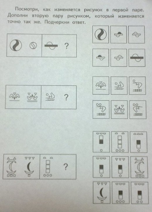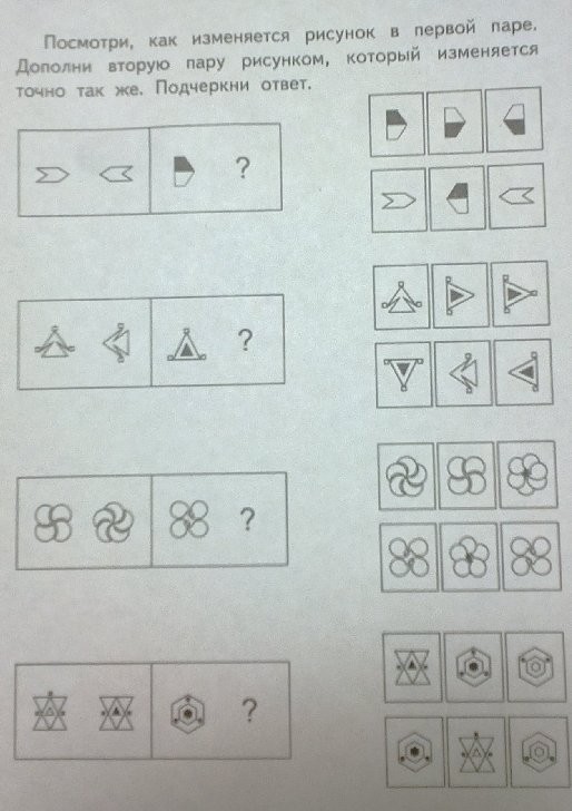 Папка "Аналогии" поможет ребенку развить зрительное восприятие, произвольное внимание, кратковременную память и логическое мышление. В папке на каждой странице вы найдете следующее задание: определи, по каким параметрам изменяется рисунок (фигура, буква и др.); по тем же самым параметрам измени второй рисунок; отметь правильный вариант ответа.