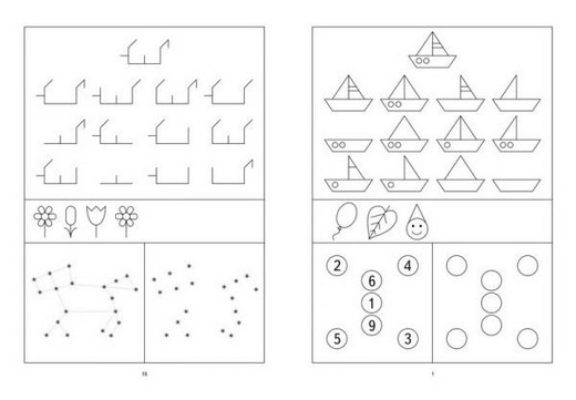 1.Посмотри на образец и догадайся, каких деталей не хватает у остальных рисунков. Дорисуй недостающие детали у каждой из картинок.