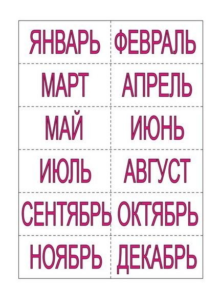 Цветные вкладыши необходимо разрезать по пунктирным линиям. При помощи получившихся карточек ребёнок сможет разложить по порядку дни недели, части суток, времена года и месяцы.