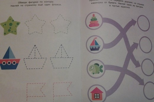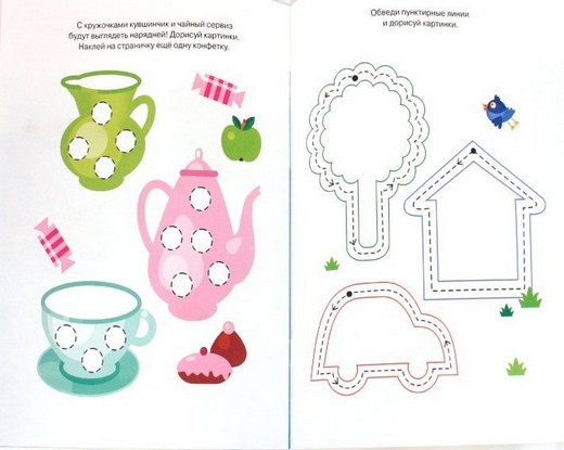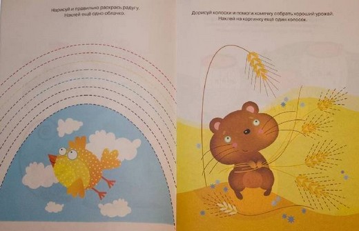 Эта книга поможет вашему малышу развить графические навыки, наглядно-образное мышление, произвольное внимание и зрительное восприятие. Ребенок научится проводить прямые, волнистые и округлые линии в разных направлениях, аккуратно обводить и раскрашивать простые рисунки. Наклеивание картинок сделает процесс обучения не только увлекательным занятием, но и разовьет мелкую моторику и координацию движений руки. Возможно, малышу потребуется ваша помощь. Найдите вместе с ним нужную наклейку и приклейте ее на страничку. Не забудьте похвалить малыша по окончании занятий.