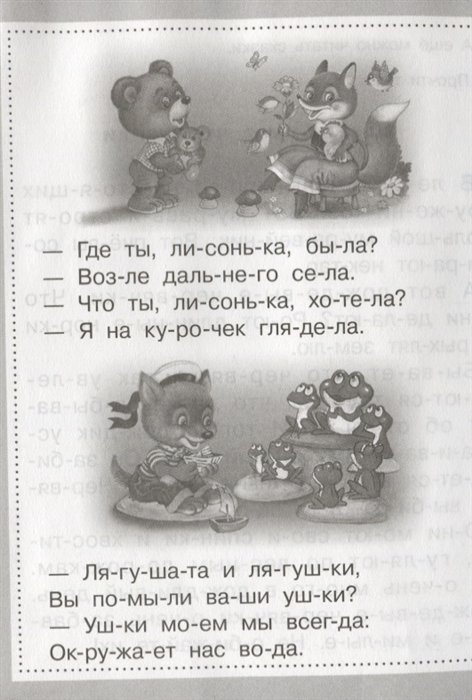 На каждом развороте представлен занимательный текст в стихотворной форме, которая помогает быстрее овладеть навыком чтения. Все слова в стихотворении разделены на слоги, что помогает ребенку плавно переходить от слогового чтения к чтению целыми словами.