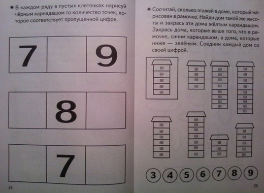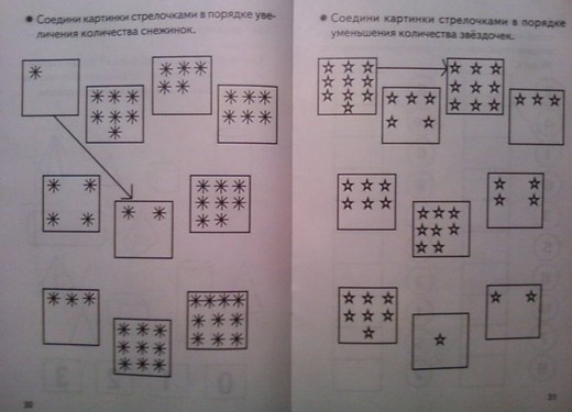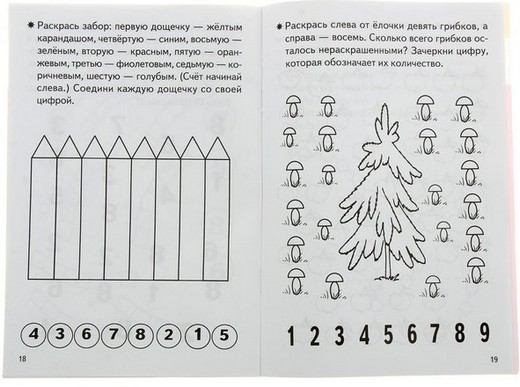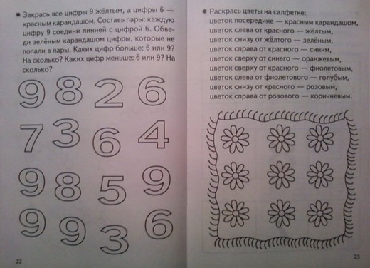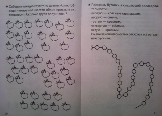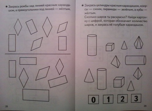 В тетради также представлены задания на знакомство с геометрическими фигурами и на закрепление знаний о них, на сравнение предметов по различным признакам.
