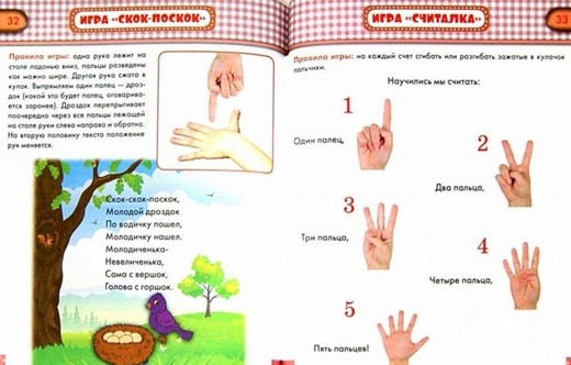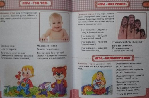 Книга «Игры на ладошке» предназначена для развития мелкой моторики малышей. Загибая и разгибая пальчики ребёнка, ласково массируя их, под сопровождение весёлых шутливых стишков и забавных песенок, вы поможете малышу выработать ловкость пальчиков, научиться управлять своими движениями. Важно знать, что выполнение подобных упражнений оказывает стимулирующие влияние не только на развитие мелкой моторики, но и речи ребёнка.